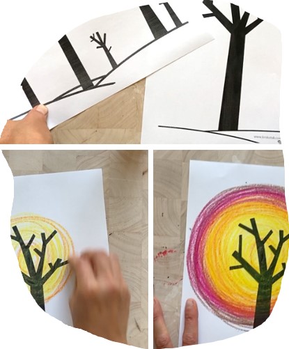 Façon originale de représenter les couleurs de l'automne. Au final, avec cette technique, CHAQUE enfant aura un beau résultat.