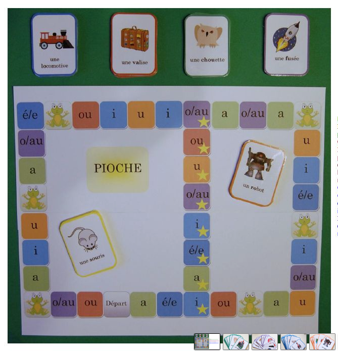 Il s'agit de retrouver sur des cartes-mots des syllabes formées sur la piste jeu et être le premier à se débarasser de ses cartes.