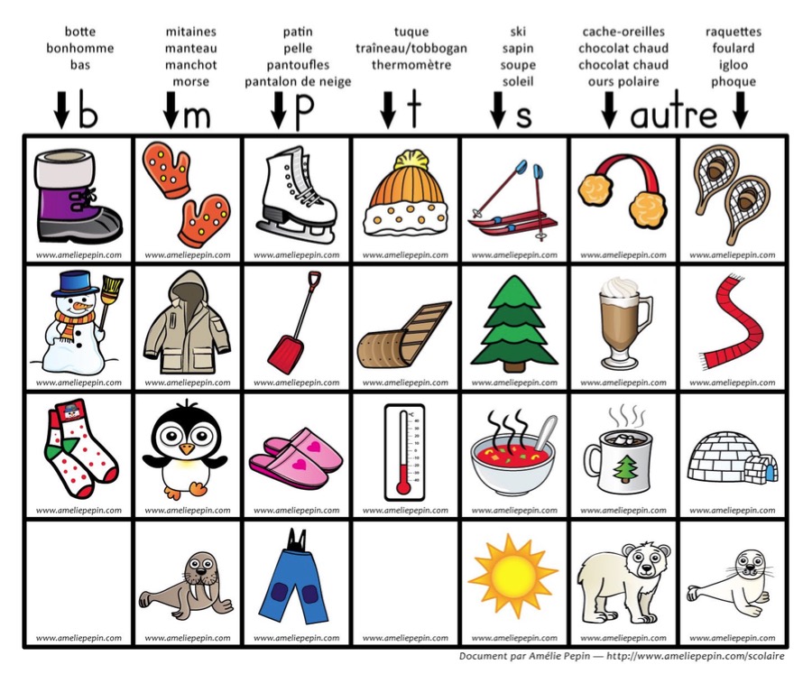 Pour l'hiver, voici une activité sur les sons pour le préscolaire. Vous pouvez même vous amuser à faire une murale avec vos élèves en collant les igloos sur un gros carton bleu (vous pouvez utiliser des velcros ou des aimants pour les faire tenir). Vous pouvez leur faire bricoler des sapins, des (...)