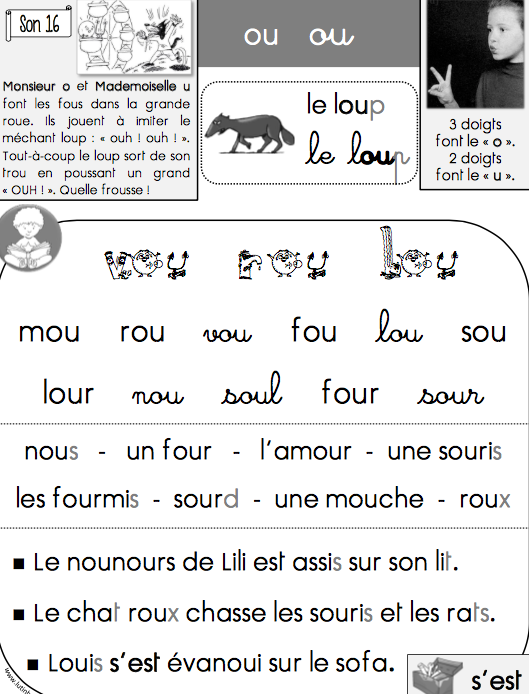 Une série de vidéos, avec le texte associé. Chaque vidéo travaille un son particuler.