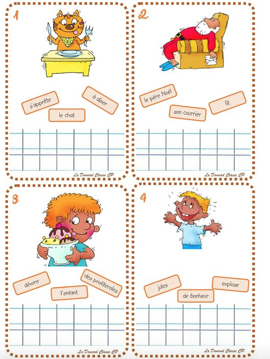 Donner du sens en ordonnant les groupes de la phrase... Mes élèves ont un mal fou avec ce genre d'exercice. Il faut sans cesse revenir dessus et pour certains même en fin d'année la méthode reste très approximative. Voici donc 28 petites cartes, sur lesquelles vous trouverez des phrases de type S + (...)