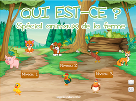Pour les 3H, un Qui-est-ce? sur le thème des animaux de la ferme. Les élèves doivent pouvoir lire le descriptif de l'animal pour l'identifier: 2 options, choix direct ou élimination des mauvais candidats. Le jeu propose 3 niveaux, dont le 3e semble relativement inacessible à cet âge (références (...)