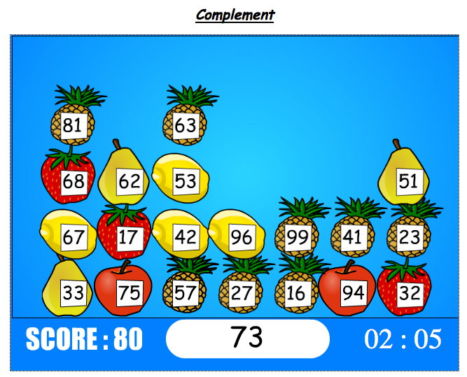 Jeu de mathématiques qui permet d'entrainer les compléments à 100 ainsi que la rapidité des élèves.