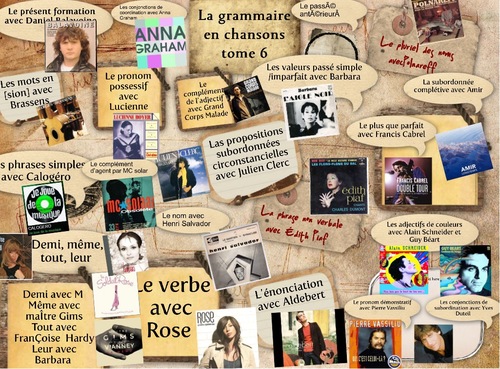 Une petite bibliothèque de chansons françaises pour introduire et travailler avec des élèves les principales notions de Grammaire. Un clic sur l’une des pochettes et voilà qu’apparaît le clip sur YouTube avec le texte des chansons. Textes et musique. Formidable. Marie propose pas moins de six tomes (...)