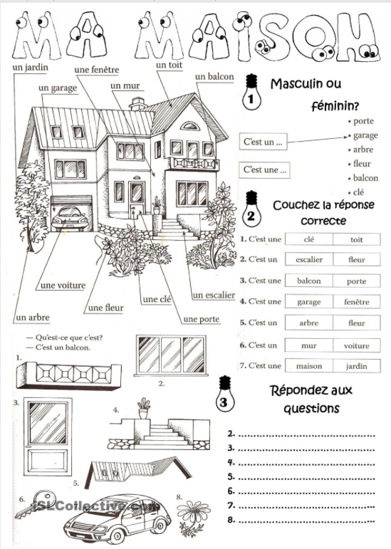 Jolie fiche afin de travailler le vocabulaire en lien avec le thème de la maison.