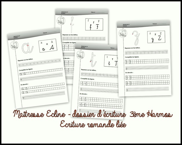 Les ardoises n'étant plus à mon goût, j'ai créé un fichier d'écriture avec une partie "en devoirs" pour les 3ème Harmos.