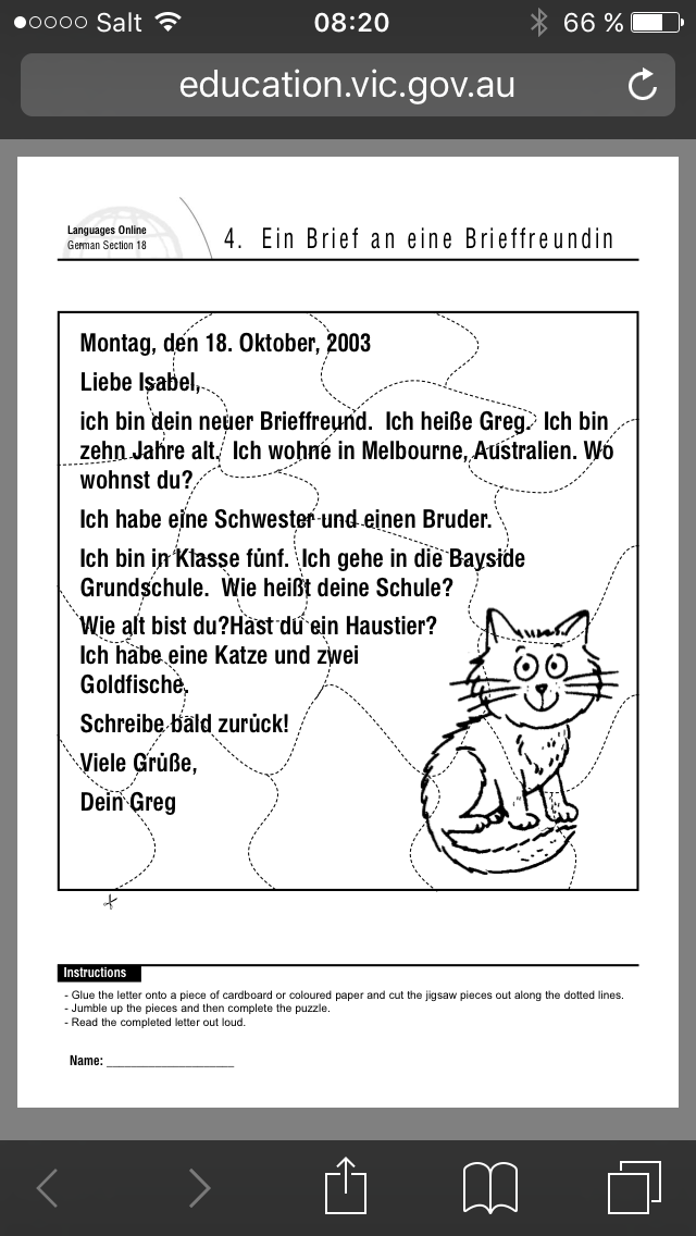 Site australien d'apprentissage de l'allemand. Nombreuses fiches d'exercices et aussi des chansons. Thèmes variés: couleurs, habitat, ...