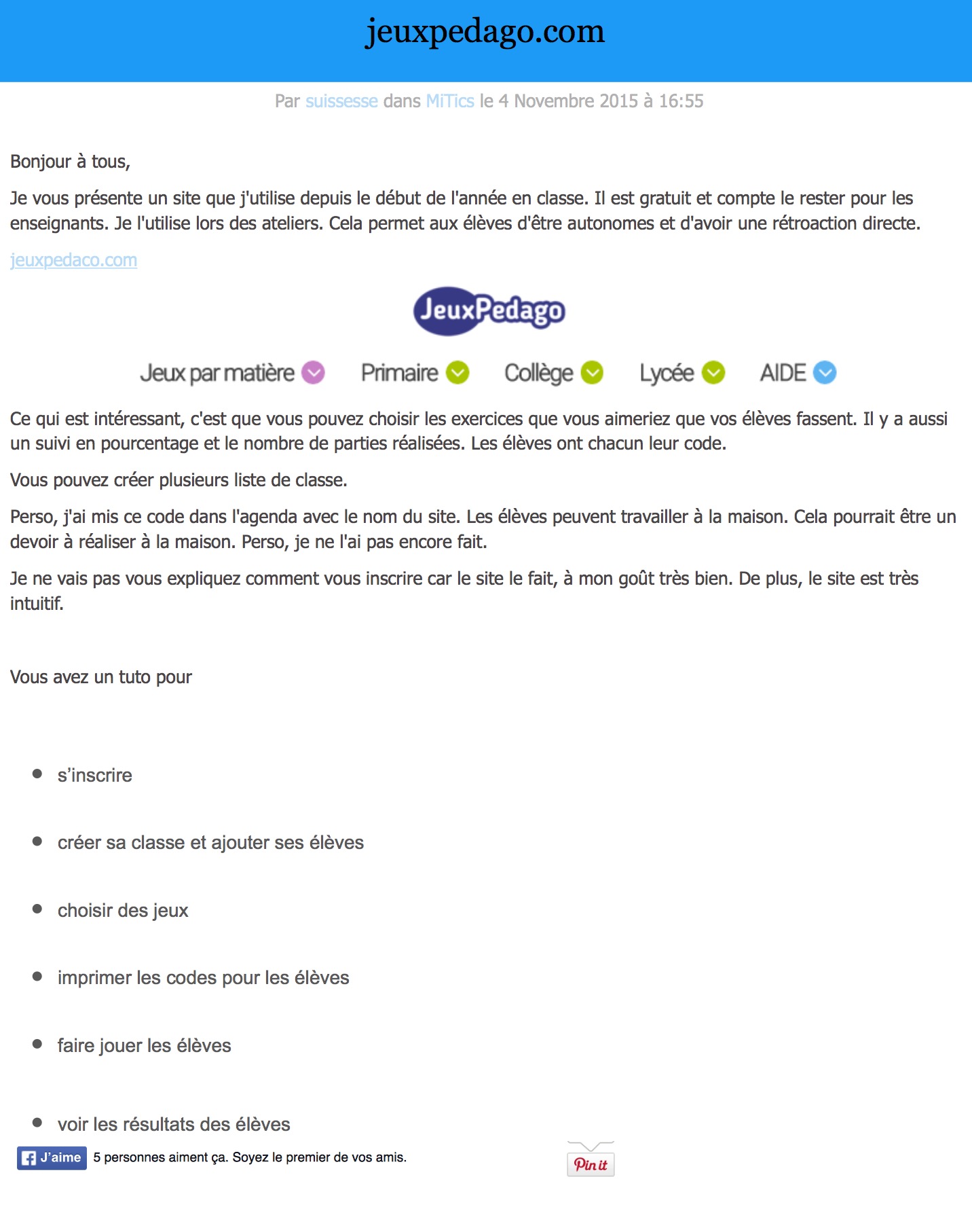 Entraînement de notions par l'intermédiaire de l'informatique. L'enseignant inscrit sa classe, ses élèves et peut ainsi prévoir un programme à suivre.