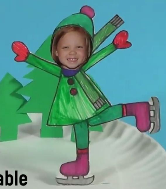 La patineuse. Bricolage mobile ! (joli bricolage à exécuter par exemple pour les correspondants) Utilisation du portrait de l'enfant pour compléter le,la patineur,euse. (le lien nous emmène sur facebook, tuto-vidéo)
