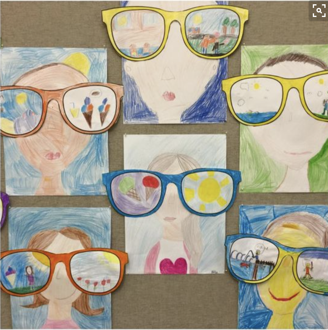 Il fait chaud...il fait beau...bientôt les vacances.... Imagine ce que tu vas voir... OU..... à la rentrée : - j'ai vu.... dessine ton portrait..... prépare tes lunettes.....décore le tout. (la forme des lunettes peut être variée)