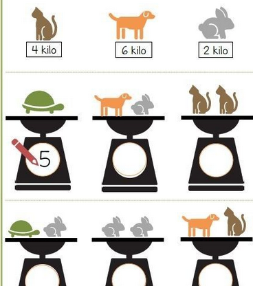 Noter le poids de chaque pesée : dessiner l'aiguille ! Jolie idée... original de noter la réponse sur la balance...