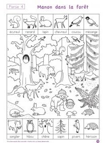 10 pages d’exercices variés d’observation thème : la forêt. (observer, rechercher, découper, coller, ... ---> les animaux et les oiseaux de la forêt.)