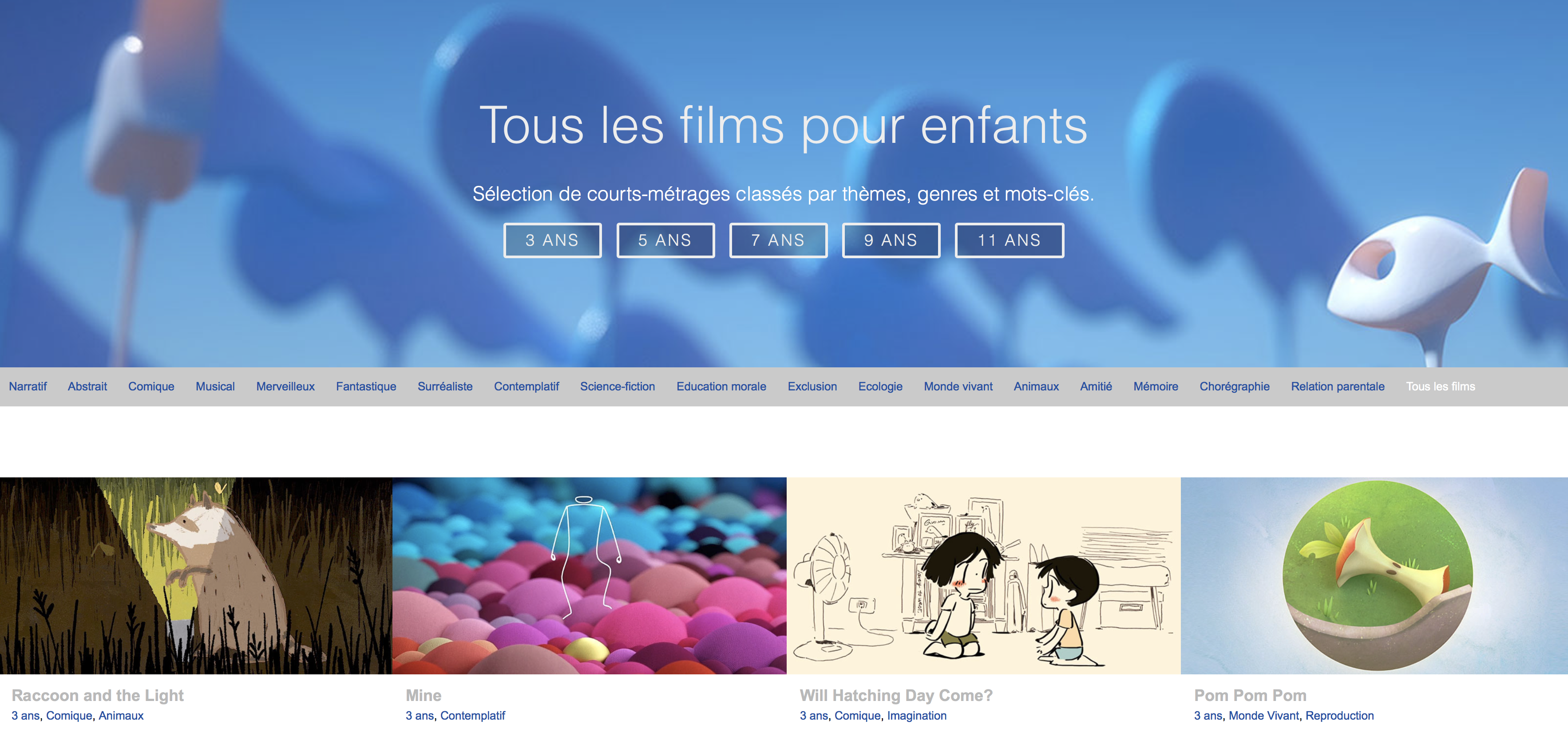 Comme les livres, la peinture ou la musique, les films et dessins animés pour enfants permettent de se construire des goûts. Notre portail focalise sur la dimension poétique des films et sur l'originalité de leurs messages et univers visuels.
