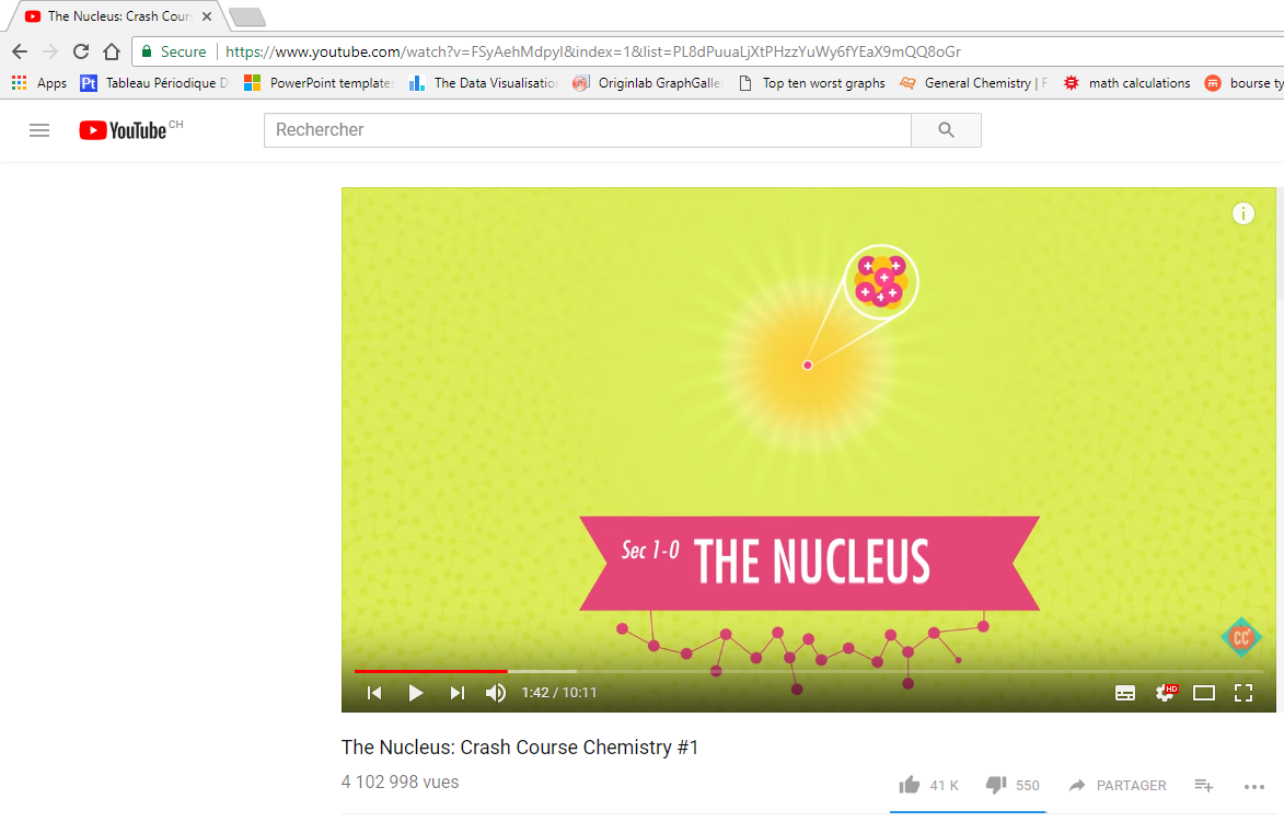 (ENG). Possibilité d'activer les sous-titres en français (et d'autres langues). La vidéo aborde l'électron sous différents angles: couches électroniques, orbitales, configurations électroniques, ionisation et affinité électronique.