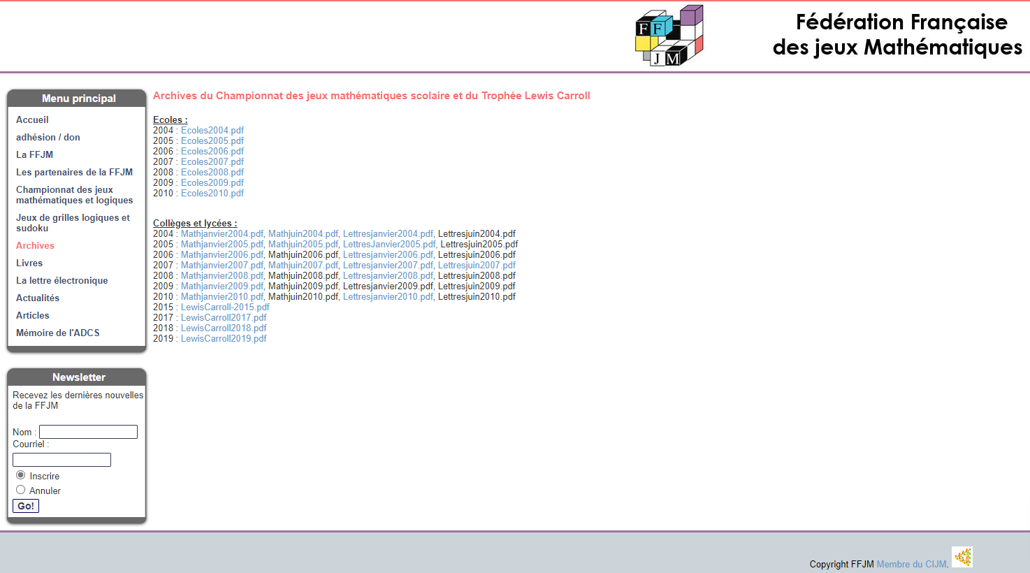Archives du Championnat des jeux mathématiques scolaire et du Trophée Lewis Carroll - France