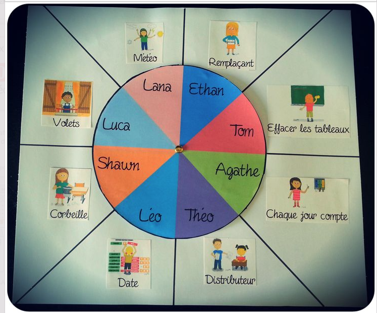 Le lundi matin, en arrivant, hop on tourne la roue d'un cran, on annonce la nouvelle responsabilité de chacun et voilà! Plus d'élèves qui râlent parce qu'ils voulaient telle ou telle chose, ou de responsabilité "sans succès", de contestation "Ça fait trois fois qu'il fait ça et moi je l'ai jamais (...)